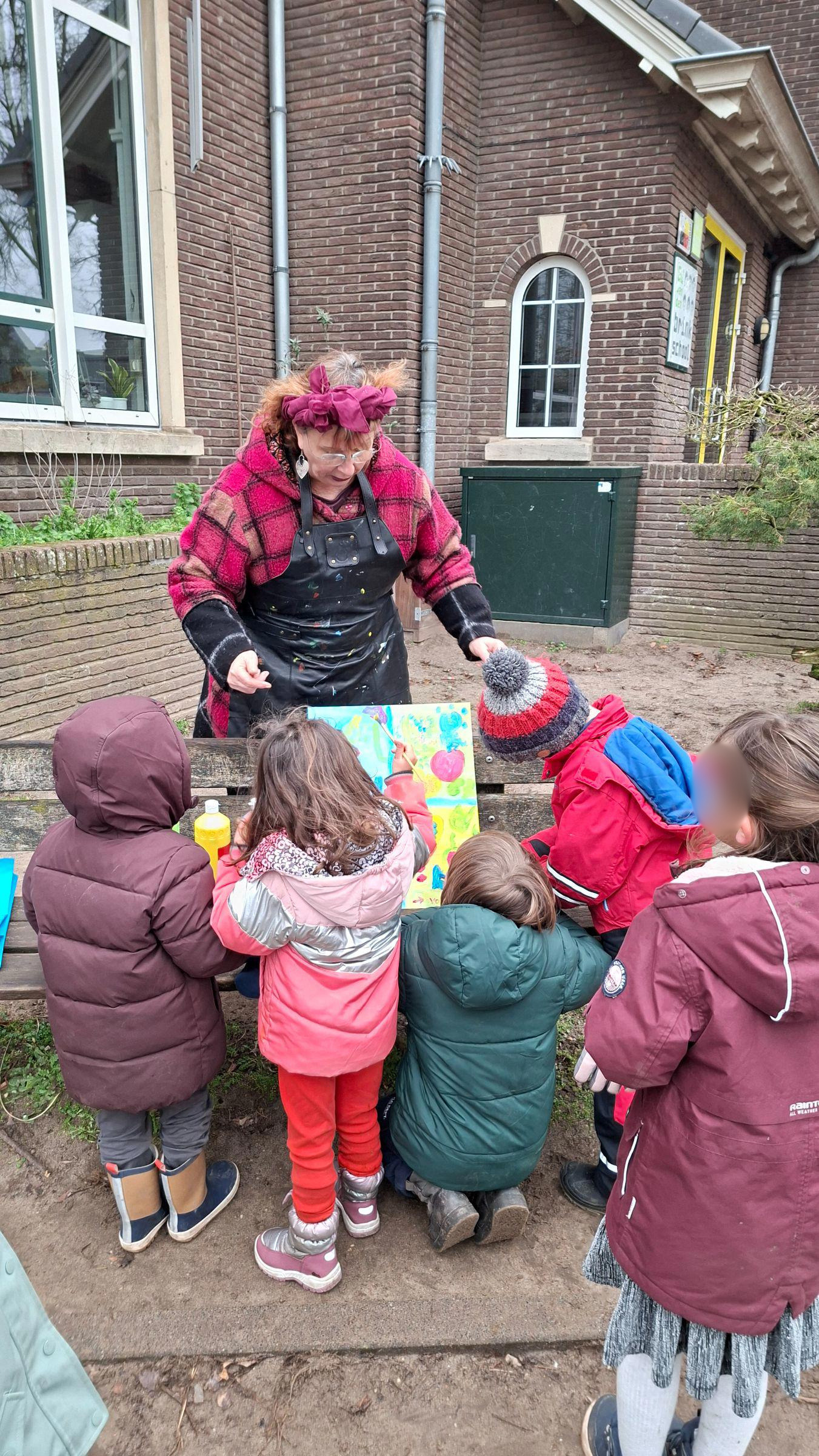 Elk groepje kreeg een eigen vlak om te beschilderen. Samen vormde dat één groot kunstwerk — een prachtig resultaat van samenwerking!