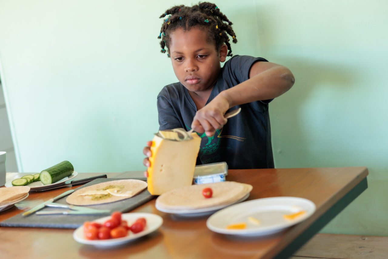 Daarnaast heeft Schateiland vier bso-groepen voor kinderen van 4 tot en met 7 jaar. Kinderen komen binnen op hun eigen basisgroep en daarna werken we locatiebreed waarbij we drie tot vier verschillende activiteiten aanbieden in de verschillende ruimtes die onze bso rijk is. We duiken in de belevingswereld van kinderen om erachter te komen wat hun behoeftes zijn en praten met kinderen om te horen hoe de activiteiten kunnen aansluiten bij wat er leeft. In de tuin kunnen kinderen graven in de zandbak, voetballen of andere balspelletjes doen en spelen met de beekloop en onze waterpomp.